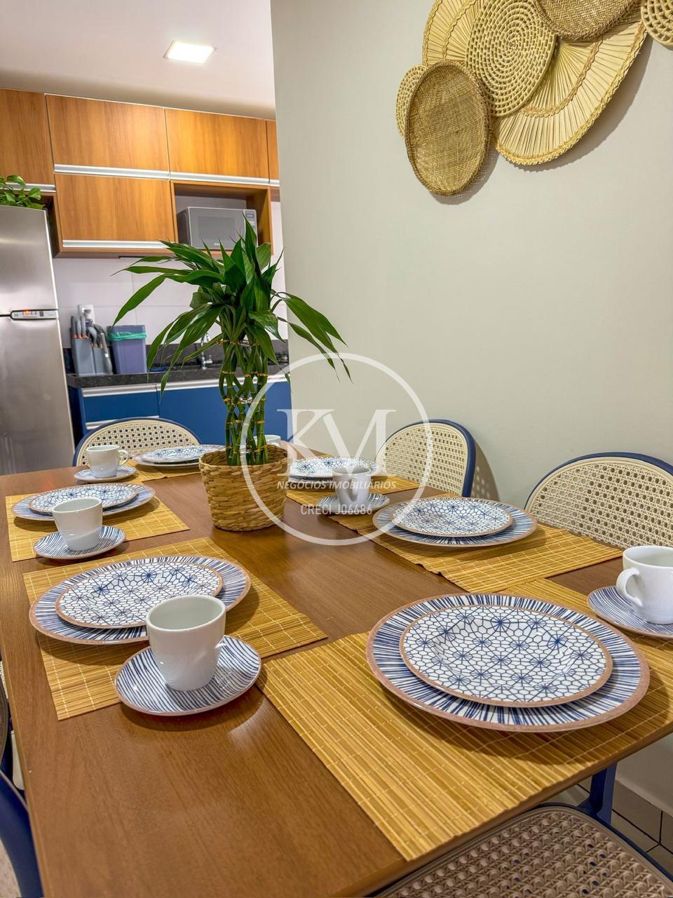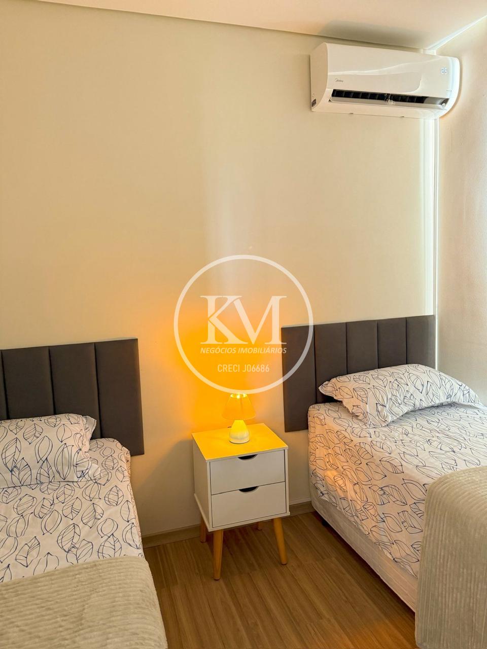 2 Dormitórios - 1 quarto de casal + 1 quarto com duas camas de solteiro Totalmente mobiliado - móveis planejados, eletrodomésticos, utensílios de cozinha, roupas de cama e decoração completa Ar-condicionado nos dois quartos 1 Vaga de garagem coberta dentro do condomínio Sacada com churrasqueira 4º andar com elevador e acessibilidade total